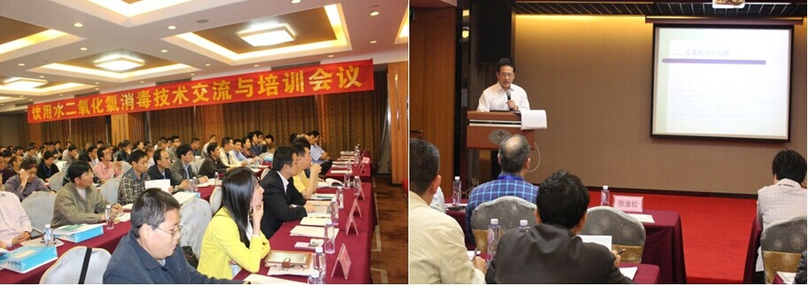 2014年3月27日中國城鎮供水排水協會科學技術委員會、廣東省城鎮供水協會與歐泰華公司聯合在深圳舉辦《飲用水二氧化氯消毒技術交流與培訓會議》,深圳歐泰華工程設備有限公司作為本次會議的唯一的協辦單位,隆重展出了國家實用新型專利產品——最新一代“歐鈦”系列二氧化氯與氯混合消毒劑發生器、國家發明專利產品——純二氧化氯消毒劑發生器(三元法),吸引了眾多供水企業代表。