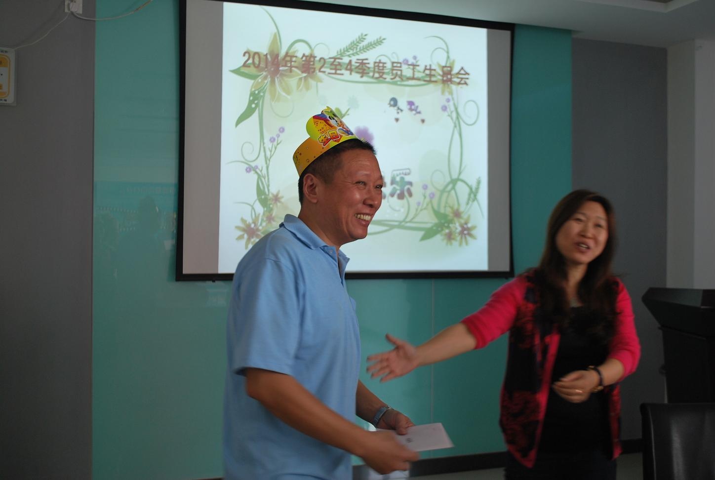 “祝你生日快樂,祝你生日快樂。。。。。。”伴隨著《生日歌》那熟悉的旋律,現場融洽和諧的氣氛,讓大伙兒都洋溢著開心幸福的笑容,享受著這輕松、愉快的時光。會上由公司領導--孫總給每一位“壽星”送上精美的賀卡并致以誠摯的問候與祝福。