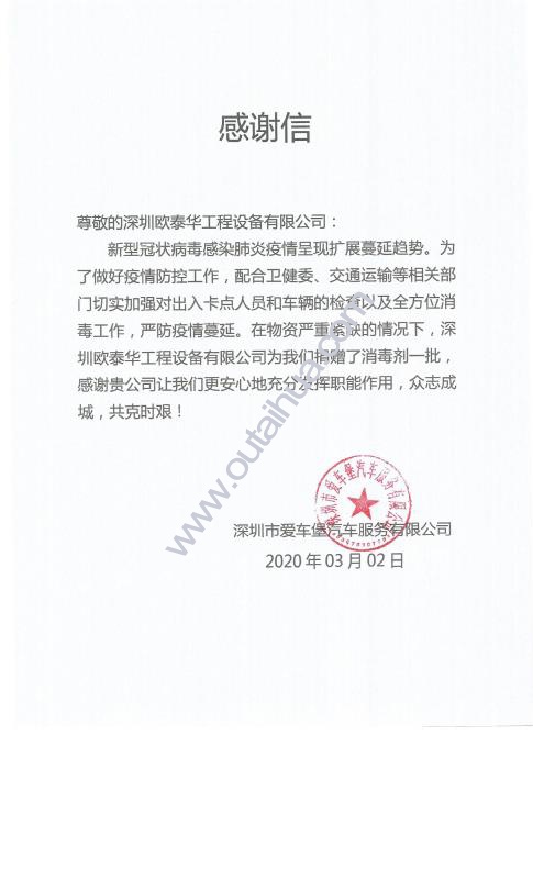 4.深圳市愛車堡汽車服務有限公司感謝信