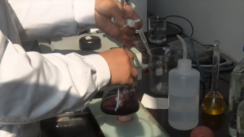 水質(zhì)監(jiān)測人員正在對當(dāng)天生產(chǎn)的飲用水做水質(zhì)檢測