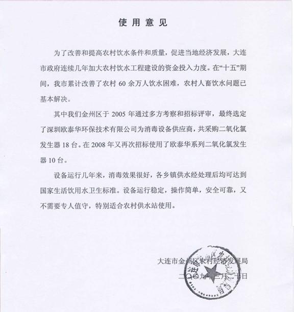 下一篇:歐泰華二氧化氯發生器光榮入選農村飲水安全產品