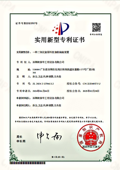 此項專利的落地應用,標志著我國水處理行業在精細化投加領域取得突破性進展,為智慧水務建設提供了關鍵技術支撐。歐泰華研發團隊表示,將持續優化產品性能,推動行業向更智能、更高效的方向邁進。