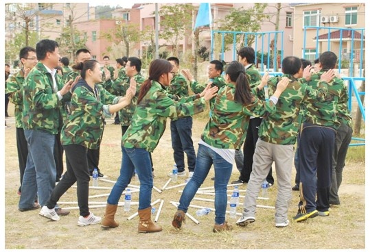 當我們在進行到三分之二的時候,團隊中只是稍稍發出一聲因用力所發出的吼聲時,教練的再一聲令下所有人統統重新來過時,把團隊中所有人的情緒推向了巔峰,有憤怒,有無奈,但在無形中卻更多的是激發了我們的向心力,統一了我們的思想,只有一個目標,順利成功地越獄!所有人都嚴格遵守游戲規則,最終我們順利全部成功越獄,三次累加起來的耗時僅為——9分18秒!