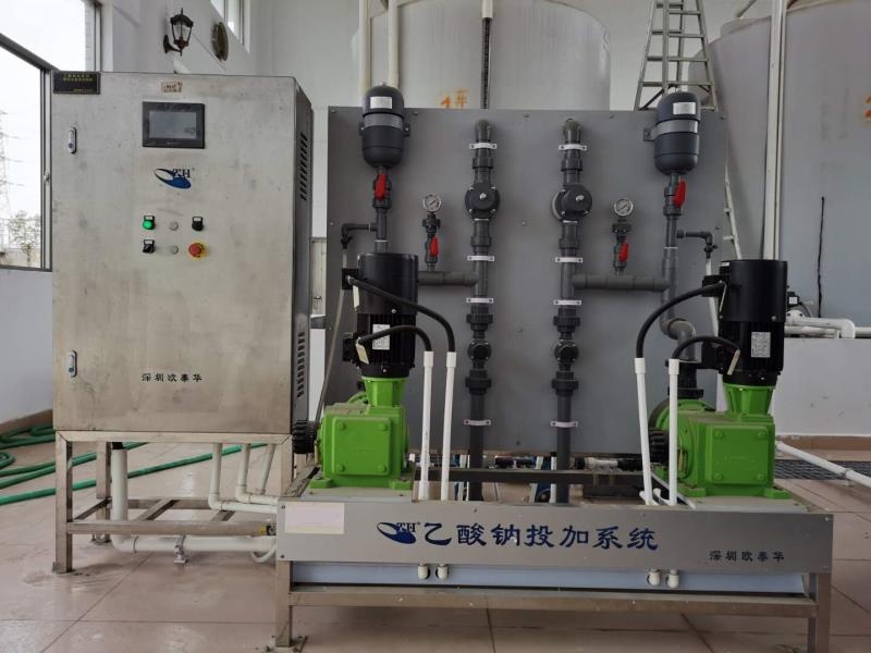 加藥裝置是以計量泵為主要投加設備,將溶藥箱、攪拌器、液位計、安全閥、止回閥、壓力表、過濾器、緩沖器、管路、閥門、底座、扶梯、自動控制系統等按工藝流程需要組裝在一個公共平臺上,形成了一個模塊,即所謂的 撬裝式組合式單元。按需要將宣的藥劑放入攪拌溶液臬內進行攪拌溶解,溶解完畢后再通過計量泵送至投加點的工作過程,加藥量的大小可自由調節,以滿足不同加藥量的場所。